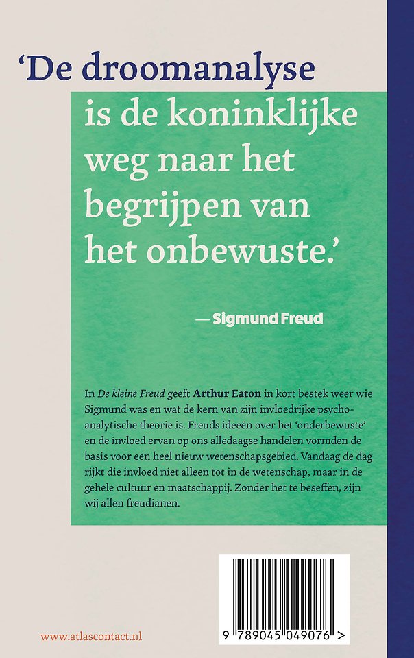 In De kleine Freud geeft Arthur Eaton in kort bestek weer wie Sigmund was en wat de kern van zijn invloedrijke psychoanalytische theorie is. Freuds ideeën over het ‘onderbewuste’ en de invloed ervan op ons alledaagse handelen vormden de basis voor een heel nieuw wetenschapsgebied. Vandaag de dag reikt die invloed niet alleen tot in de wetenschap, maar in de gehele cultuur en maatschappij. Zonder het te beseffen, zijn wij allen freudianen.