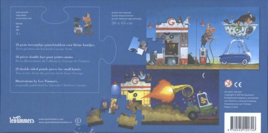 Stevige dubbelzijdige puzzel over de vrolijke doe-het-zelver Gust. Met twee prachtige afbeeldingen uit het gelijknamige boek. Voor kinderen van 4 jaar en ouder.