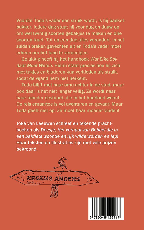Voordat Toda’s vader een struik wordt, is hij banketbakker. Iedere dag staat hij voor dag en dauw op om wel twintig soorten gebakjes te maken en drie soorten taart. Tot op een dag alles verandert. In het zuiden breken gevechten uit en Toda’s vader moet erheen om het land te verdedigen.