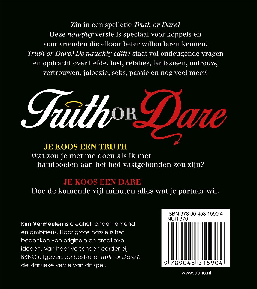 "Truth or Dare - De naughty versie" staat vol ondeugende vragen en opdracht over liefde, lust, relaties, fantasieën, ontrouw, vertrouwen, jaloezie, seks, passie en nog veel meer!