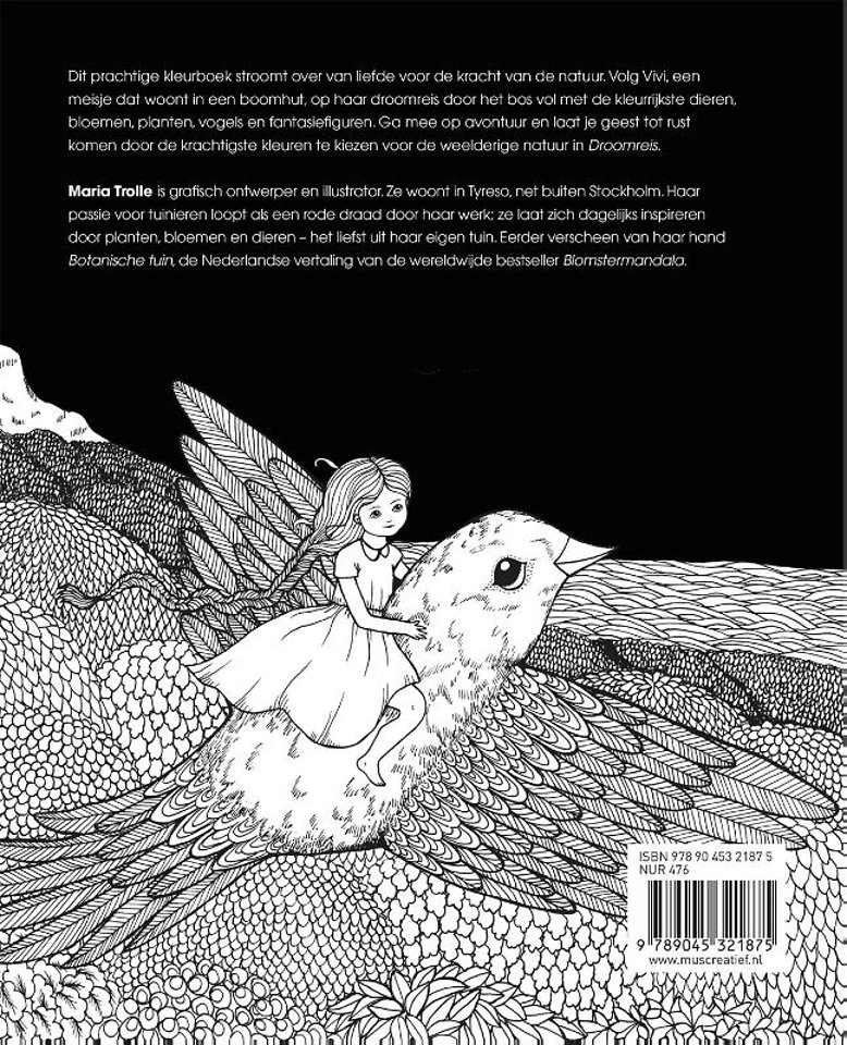 Dit prachtige kleurboek stroomt over van liefde voor de kracht van de natuur. Volg Vivi, een meisje dat woont in een boomhut, op haar droomreis door het bos vol met de kleurrijkste dieren, bloemen, planten, vogels en fantasiefiguren. Ga mee op avontuur en laat je geest tot rust komen door de krachtigste kleuren te kiezen voor de weelderige natuur in Droomreis.