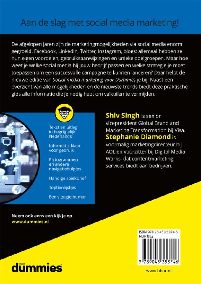 Daar helpt de nieuwe editie van 'Social media marketing voor Dummies' je bij! Naast een overzicht van alle mogelijkheden en de nieuwste trends biedt deze praktische gids alle informatie die je nodig hebt om valkuilen te vermijden. Of je nu een drukke marketeer, eigenaar van een klein bedrijf of een ondernemer bent die nieuwe afzetmarkten wil bereiken met behulp van social media, met dit boek ben je van alle markten thuis.