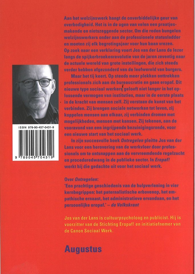 In zijn succesvolle boek Ontregelen pleitte Jos van der Lans voor een herovering van de werkvloer door professionals, om te ontsnappen aan de vervreemdende regelzucht en proceduredwang in de publieke sector. In Eropaf! werkt hij die gedachte uit voor het sociaal werk.
