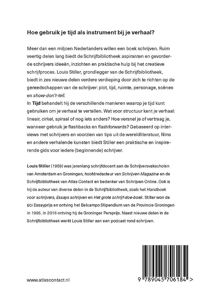 In ‘Tijd’ behandelt Louis Stiller, grondlegger van De Schrijfbibliotheek, de verschillende manieren waarop je tijd kunt gebruiken om je verhaal te vertellen. Wat voor structuur kent je verhaal: lineair, cirkel, spiraal of nog iets anders? Wanneer gebruik je flashbacks en flashforwards, welk verteltempo past bij welk verhaal? Gebaseerd op interviews met schrijvers en voorzien van tips uit de wereldliteratuur, films en andere verhalende kunsten biedt Stiller een praktische en inspirerende gids voor iedere (beginnende) schrijver.