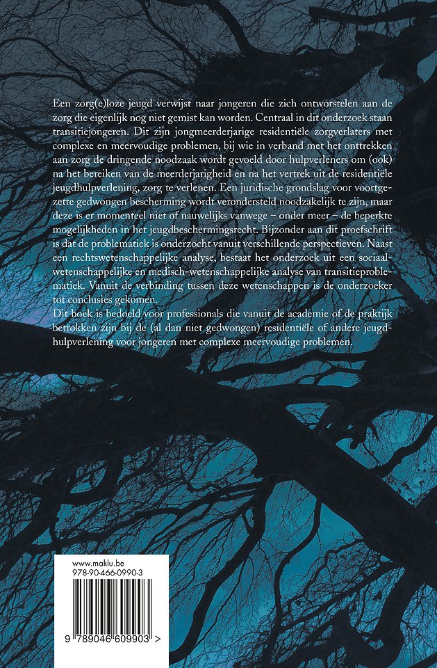 Een juridische grondslag voor voortgezette gedwongen bescherming wordt verondersteld noodzakelijk te zijn, maar deze is er momenteel niet of nauwelijks vanwege - onder meer - de beperkte mogelijkheden in het jeugdbeschermingsrecht. Bijzonder aan dit proefschrift is dat de problematiek is onderzocht vanuit verschillende perspectieven. Naast een rechtswetenschappelijke analyse, bestaat het onderzoek uit een sociaalwetenschappelijke en medisch-wetenschappelijke analyse van transitieproblematiek. Vanuit de verbinding tussen deze wetenschappen is de onderzoeker tot conclusies gekomen.