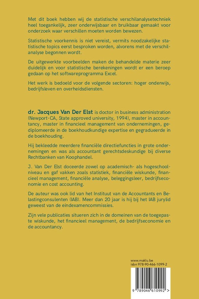 Met dit boek hebben wij de statistische verschilanalysetechniek heel toegankelijk, zeer onderwijsbaar en bruikbaar gemaakt voor onderzoek waar verschillen moeten worden bewezen.