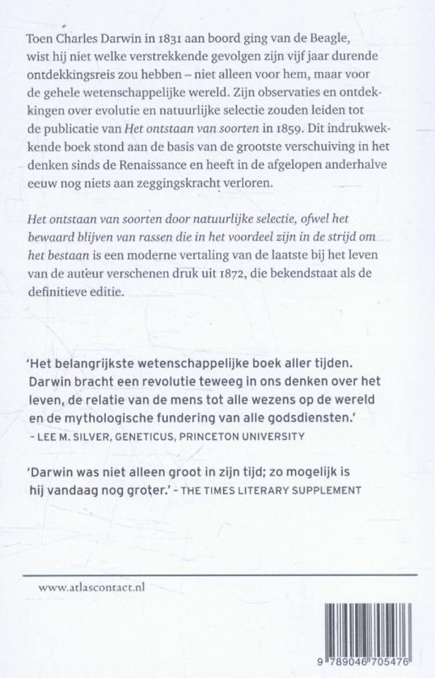 Het ontstaan van soorten van Charles Darwin stond aan de basis van de grootste verschuiving in het denken sinds de Renaissance, en heeft in de afgelopen anderhalve eeuw nog niets aan zeggingskracht verloren. Toen Darwin in 1831 aan boord ging van de Beagle wist hij niet welke verstrekkende gevolgen zijn vijf jaar durende ontdekkingsreis zou hebben, niet alleen voor hem, maar voor de gehele wetenschappelijke wereld. Zijn observaties en ontdekkingen over evolutie en natuurlijke selectie zouden leiden tot de publicatie van Het ontstaan van soorten in 1859. Dit indrukwekkende boek, over het bewaard blijven van rassen die in het voordeel zijn in de strijd om het bestaan, is een moderne vertaling van de laatste bij leven van de auteur verschenen druk uit 1872, die bekend staat als de definitieve editie.