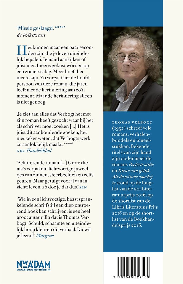 Het kunnen maar een paar seconden zijn die je leven uiteindelijk bepalen. Iemand aankijken of juist niet. Ineens gekust worden op een zomerse dag. Meer hoeft het niet te zijn. Zo vergaat het de hoofdpersoon van deze roman, die jaren leeft met de herinnering aan zo'n moment. Maar de herinnering alleen is niet genoeg.