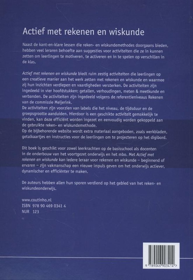 Dit boek is geschikt voor zowel leerkrachten op de basisschool als docenten in de onderbouw van het voortgezet onderwijs en het mbo. Met Actief met rekenen en wiskunde kan iedere leraar voor rekenen en wiskunde - beginnend of ervaren - zijn vakmanschap een nieuwe impuls geven om het onderwijs actiever, dynamischer en efficiënter te maken.