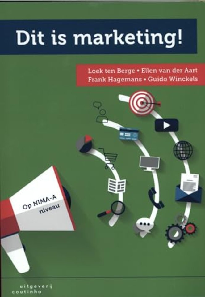 Marketing wordt vaak gezien als een synoniem voor reclame. Natuurlijk is reclame belangrijk, maar het is slechts een klein onderdeel van het brede spectrum dat marketing heet. Dit boek behandelt al die facetten en laat studenten op een toegankelijke manier kennismaken met de wereld van marketing. Dit is marketing! bevat alle verplichte stof voor het NIMA A Marketing examen en is opgedeeld in drie overzichtelijke delen. In deel 1 wordt de marketingfilosofie behandelt met behulp van basisbegrippen uit het vak. Daarnaast is er aandacht voor het marketingplanningsproces. In deel 2 wordt de omgevingsanalyse besproken en is er aandacht voor marktonderzoek en statistiek. In deel 3 wordt uitgelegd hoe het marketingbeleid van een organisatie kan worden geoperationaliseerd aan de hand van de vier marketinginstrumenten; product, prijs, plaats en promotie. Bij dit boek hoort een uitgebreide website met daarop o.a. de antwoorden op vragen bij cases uit het boek, verdiepende marketingmaterie en NIMA A oefenexamens. In deze derde, herziene druk zijn onder meer voorbeelden en cases geactualiseerd en wordt online marketing uitgebreider besproken, met ook aandacht voor video marketing en digital analytics. Dit is marketing! is bedoeld voor studenten aan commerciële opleidingen op hbo-niveau. Daarnaast is het goed te gebruiken voor zelfstandigen die hun NIMA A Marketing certificaat willen halen. Loek ten Berge, Ellen van der Aart, Frank Hagemans en Guido Winckels hebben allen ruime ervaring binnen het marketingvak. De auteurs hebben ieder hun eigen expertise en geven in dit boek een compleet beeld van alle marketingaspecten.
