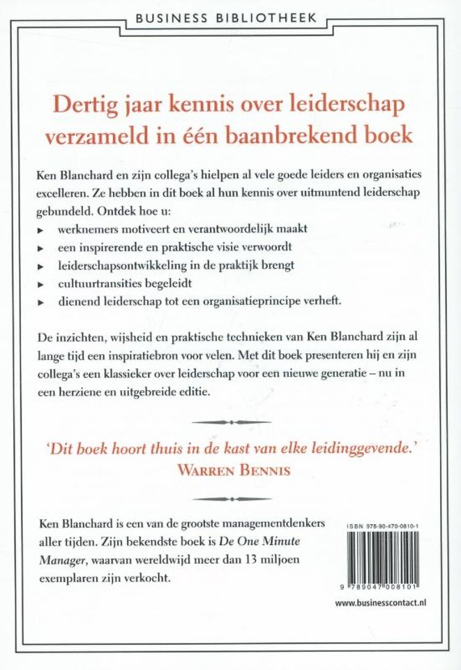 De inzichten, wijsheid en praktische technieken van Ken Blanchard zijn al lange tijd een inspiratiebron voor velen. Met dit boek presenteren hij en zij collega's een klassieker over leiderschap voor een nieuwe generatie-nu in een herziene en uitgebreide editie.