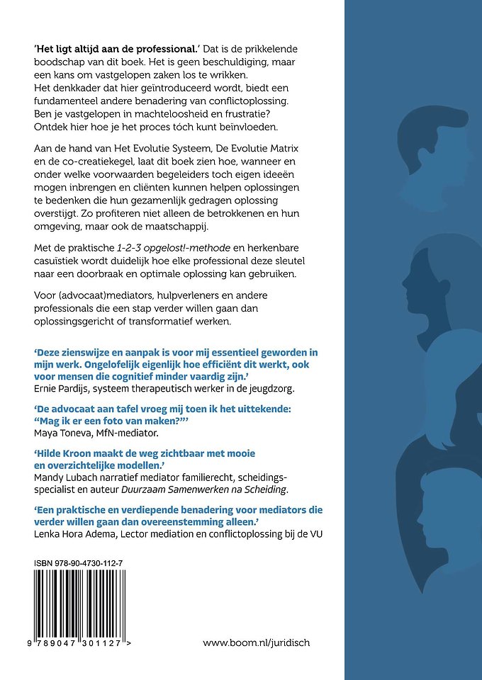 Met de praktische 1-2-3 opgelost!-methode en herkenbare casuïstiek wordt duidelijk hoe elke professional deze sleutel naar een doorbraak en optimale oplossing kan gebruiken.