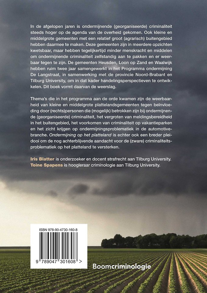 In de afgelopen jaren is ondermijnende (georganiseerde) criminaliteit steeds hoger op de agenda van de overheid gekomen. Ook kleine en middel grote gemeenten met een relatief groot (agrarisch) buitengebied hebben daarmee te maken. Deze gemeenten zijn in meerdere opzichten kwetsbaar, maar hebben tegelijkertijd minder menskracht en middelen om ondermijnende criminaliteit zelfstandig aan te pakken en er weerbaar tegen te zijn. De gemeenten Heusden, Loon op Zand en Waalwijk hebben ruim twee jaar samengewerkt in het Programma ondermijning De Langstraat, in samenwerking met de provincie Noord-Brabant en Tilburg University, om in dat kader handelingsperspectieven te ontwikkelen. Dit boek vormt daarvan de weerslag.