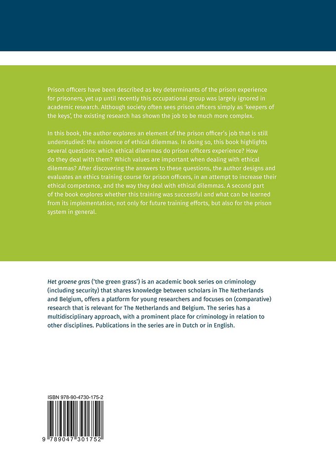 In this book, the author explores an element of the prison officer’s job that is still understudied: the existence of ethical dilemmas. In doing so, this book highlights several questions: which ethical dilemmas do prison officers experience? How do they deal with them? Which values are important when dealing with ethical dilemmas? After discovering the answers to these questions, the author designs and evaluates an ethics training course for prison officers, in an attempt to increase their ethical competence, and the way they deal with ethical dilemmas. A second part of the book explores whether this training was successful and what can be learned from its implementation, not only for future training efforts, but also for the prison system in general.