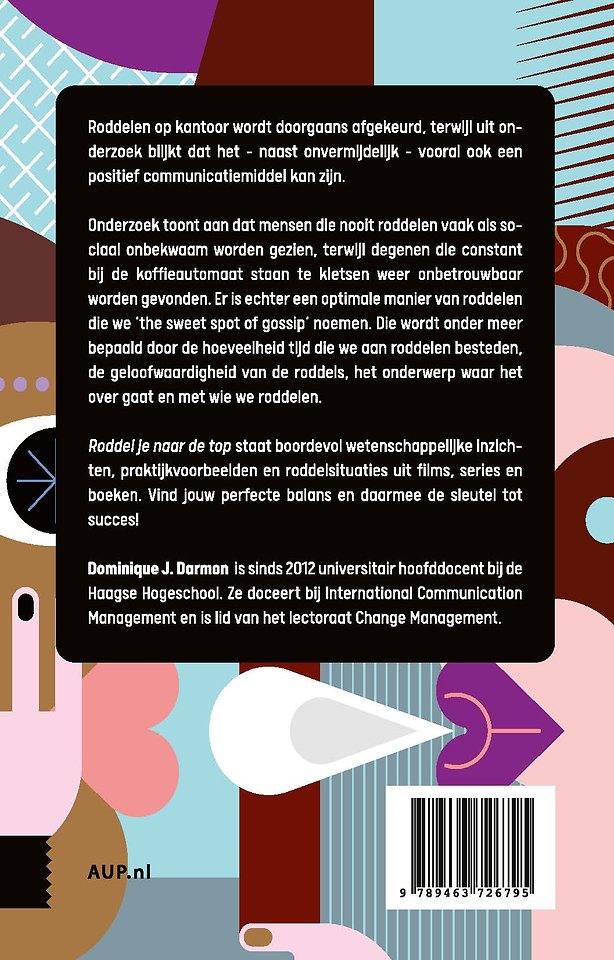 Roddel helemaal vermijden is geen goede strategie Jeroen Ansink 21 december 2022 Succes op de werkvloer hangt voor een belangrijk deel af van de manier waarop we roddelen, schrijft Haagse Hogeschool-docent Dominique Darmon in ‘Roddel je naar de top’. In het boek geeft ze een aantal tips om hierbij een optimale balans te vinden. ‘Begin langzaam en kijk hoe mensen reageren.’ Lees het volledige artikel