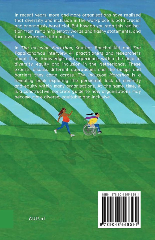 In 'The Inclusion Marathon', Kauthar Bouchallikht and Zoë Papaikonomou interview 41 practitioners and researchers about their knowledge and experience within the field of diversity, equity and inclusion in the Netherlands. These experts discuss different approaches and the bumps and barriers they come across. 'The Inclusion Marathon' is a revealing book exploring the persistent lack of diversity and equity within many organisations. At the same time, it is a constructive, concrete guide to how organisations may become more diverse, equitable and inclusive.