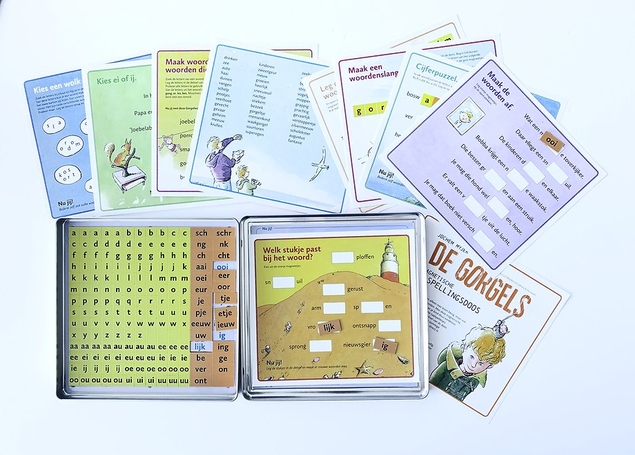 Met deze magnetische spellingsdoos kan elk kind thuis eindeloos oefenen met grappige en leerzame taalspelletjes die helemaal aansluiten bij school. Oepselabammie, hoeveel woorden kun je met deze letters maken? Hoeveel magneetjes heb je nodig voor het woord klauwen? En ken jij een woord dat je van achteren naar voren en andersom kunt lezen? Met 16 werkbladen en 180 magnetische letters. Joebelabambam!