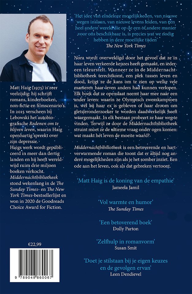 Middernachtbibiliotheek is een betoverende en hartverwarmende roman die toont dat er altijd nog andere mogelijkheden zijn als je het somber inziet. Een ode aan het leven, ook als dat gebreken vertoont.