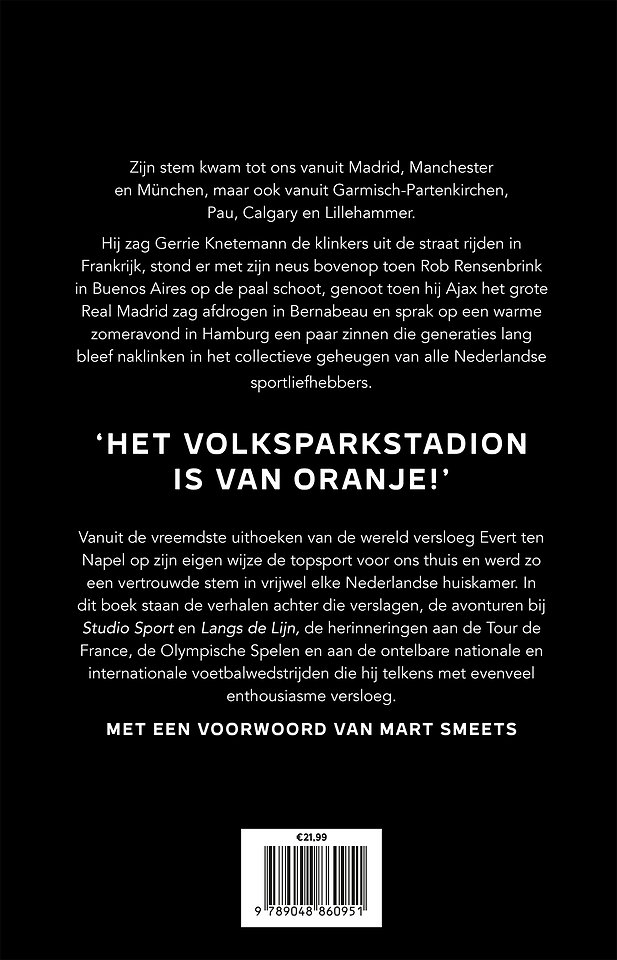 'Goeie genade', 'die dekselse Messi' en 'Het Volksparkstadion is van Oranje!', zijn kreten in het collectief geheugen van sportliefhebbers. Altijd in de enthousiaste stijl van Evert ten Napel. In zijn decennia lange loopbaan als sportverslaggever werd hij 'de commentator van het volk'.