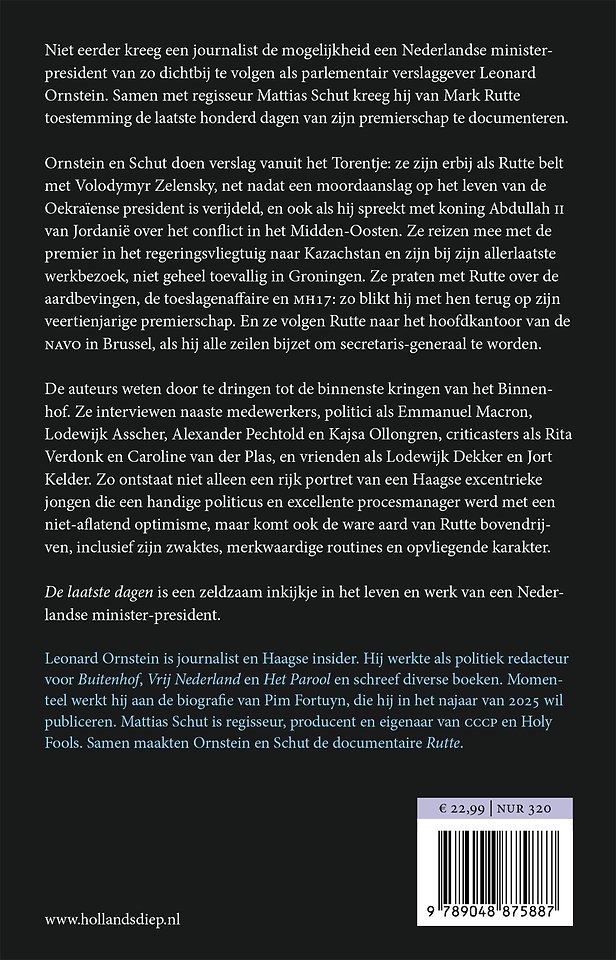 Niet eerder kreeg een journalist de mogelijkheid een Nederlandse minister-president van zo dichtbij te volgen als parlementair verslaggever Leonard Ornstein. Samen met regisseur Mattias Schut kreeg hij van Mark Rutte toestemming de laatste honderd dagen van zijn premierschap te documenteren.