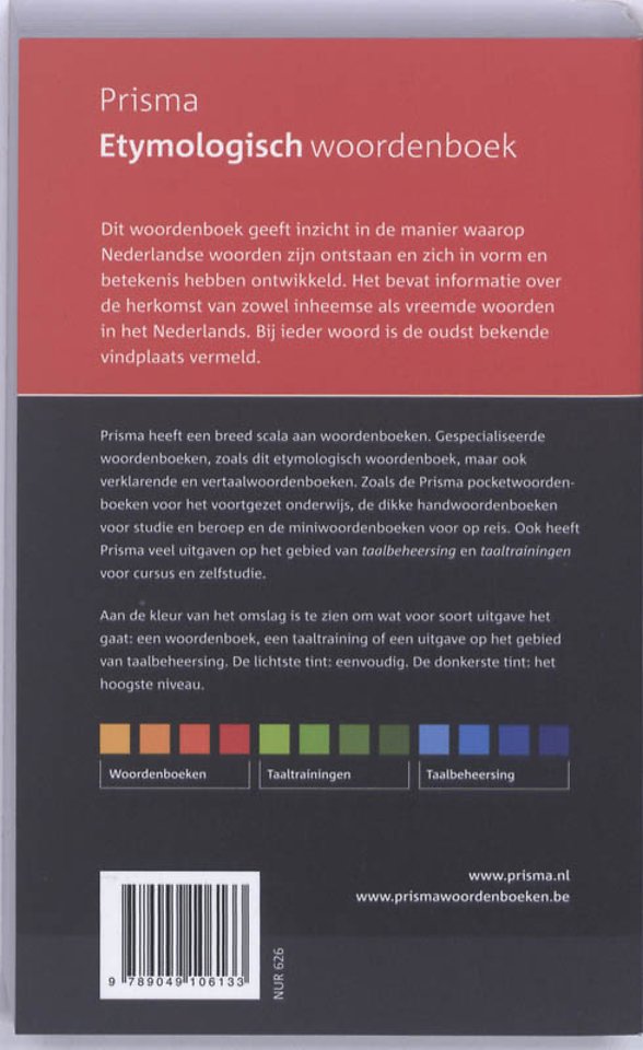 Het 'Etymologisch Woordenboek' geeft inzicht in de manier waarop Nederlandse woorden ontstaan zijn en zich in vorm en betekenis ontwikkeld hebben. Bij ieder woord wordt de oudst bekende vindplaats vermeld.