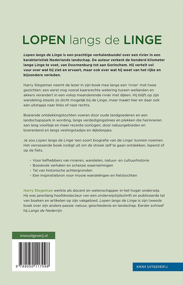 Lopen langs de Linge is eigenlijk een soort biografie van de Linge. Het verrassende boek nodigt uit om de streek zelf te gaan ontdekken, lopend of op de fiets.