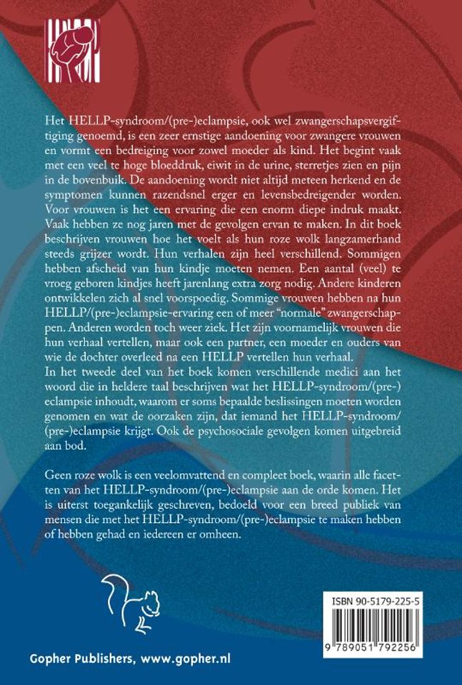 Geen roze wolk is een veelomvattend en compleet boek, waarin alle facetten van het HELLP-syndroom/(pre-)eclampsie aan de orde komen. Het is uiterst toegankelijk geschreven, bedoeld voor een breed publiek van mensen die met het HELLP-syndroom/(pre-)eclampsie te maken hebben of hebben gehad en iedereen er omheen.