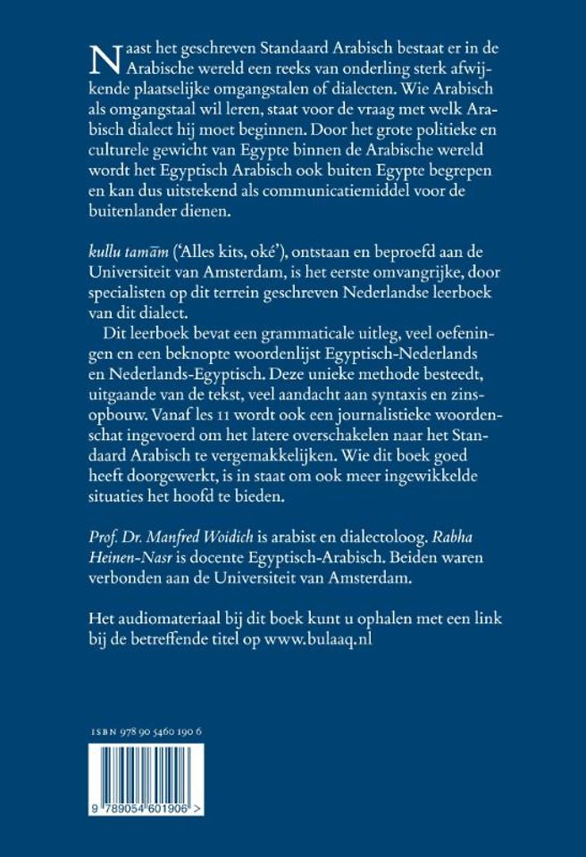 Dit leerboek bevat een grammaticale uitleg, veel oefeningen en een beknopte woordenlijst Egyptisch-Nederlands en Nederlands-Egyptisch. Deze unieke methode besteedt, uitgaande van de tekst, veel aandacht aan syntaxis en zinsopbouw. Vanaf les 11 wordt ook een journalistieke woordenschat ingevoerd om het latere overschakelen naar het Standaard Arabisch te vergemakkelijken. Wie dit boek goed heeft doorgewerkt, is in staat om ook meer ingewikkelde situaties het hoofd te bieden.