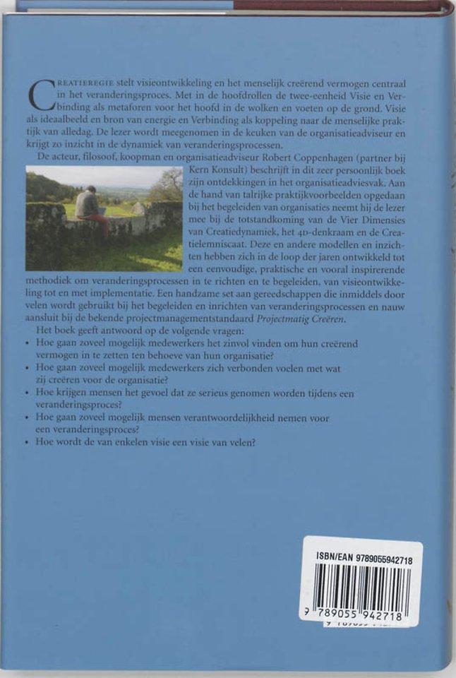 De acteur, koopman, filosoof en organisatieadviseur Robert Coppenhagen (partner bij Kern Konsult) beschrijft in dit zeer persoonlijke boek zijn ontdekkingen in het organisatieadviesvak. Aan de hand van talrijke praktijkvoorbeelden opgedaan bij het begeleiden van organisaties neemt hij de lezer mee bij de totstandkoming van de Vier Dimensies van Creatiedynamiek, het 4D-denkraam en de Creatielemniscaat. Deze en andere modellen en inzichten hebben zich in de loop der jaren ontwikkeld tot een eenvoudige, praktische en vooral inspirerende methodiek om veranderingsprocessen in te richten en te begeleiden, van visieontwikkeling tot en met implementatie. Het boek bevat een handzame set aan gereedschappen die inmiddels door velen wordt gebruikt bij het begeleiden en inrichten van veranderingsprocessen. De gereedschappen sluiten nauw aan bij de bekende projectmanagementstandaard Projectmatig Creëren.