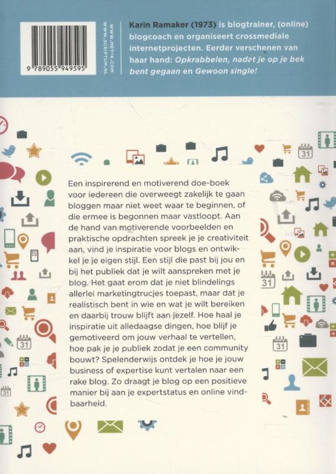 Een inspirerend en motiverend doe-boek voor iedereen die overweegt zakelijk te gaan bloggen maar niet weet waar te beginnen, of die ermee is begonnen maar vastloopt. Aan de hand van motiverende voorbeelden en praktische opdrachten spreek je je creativiteit aan, vind je inspiratie voor blogs en ontwikkel je je eigen stijl. Een stijl die past bij jou en bij het publiek dat je wilt aanspreken met je blog.