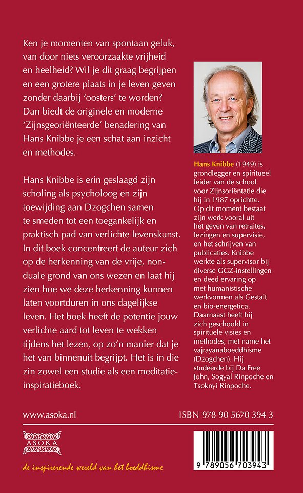 Hans Knibbe is erin geslaagd zijn scholing als psycholoog en zijn toewijding aan Dzogchen samen te smeden tot een toegankelijk en praktisch pad van verlichte levenskunst. In dit boek concentreert de auteur zich op de herkenning van de vrije, non-duale grond van ons wezen en laat hij zien hoe we deze herkenning kunnen laten voortduren in ons dagelijkse leven. Het boek heeft de potentie jouw verlichte aard tot leven te wekken tijdens het lezen, op zo’n manier dat je het van binnenuit begrijpt. Het is in die zin zowel een studieals een meditatie-inspiratieboek.