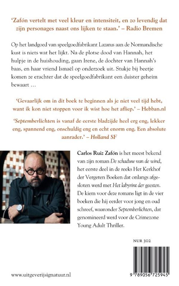 'septemberlichten is vanaf de eerste bladzijde heel erg eng, lekker eng, spannend eng, onschuldig eng en echt enorm eng. een absolute aanrader.' - Holland SF