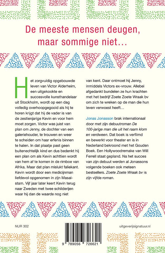 Het zorgvuldig opgebouwde leven van Victor Alderheim, een uitgekookte en succesvolle kunsthandelaar uit Stockholm, wordt op een dag volledig overhoop gegooid als hij te horen krijgt dat hij de vader van de zestienjarige Kevin is en voor hem moet zorgen. Victor was juist van plan om Jenny, de dochter van een galeriehouder, te trouwen - en weer te scheiden - om haar erfenis binnen te halen. In dat plaatje past geen buitenechtelijk kind en dus bedenkt hij een plan om van Kevin af te komen in de rimboe van Afrika als de jongen achttien wordt. Maar dat plan mislukt faliekant. Kevin wordt liefdevol door een medicijnman in zijn Masai-stam opgenomen. Vijf jaar later keert Kevin terug naar Zweden. Daar ontmoet hij Jenny, inmiddels Victors ex-vrouw. Allebei afgedankt bundelen ze hun krachten samen met het bedrijf Zoete Zoete Wraak bv om zich te wreken op de man die hun leven verwoest heeft…