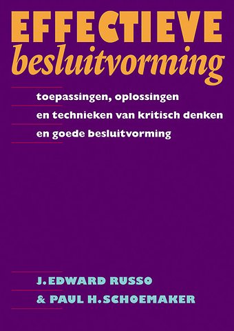 In alle organisaties moeten beslissingen worden genomen. Soms zijn dat risicovolle beslissingen, doorgaans op basis van gebrekkige informatie en al te vaak onder grote tijdsdruk. Besluitvorming is een essentiële managementvaardigheid die wel eens veronachtzaamd wordt. 'Effectieve besluitvorming' vergroot het kritisch denkvermogen en laat zien hoe u valkuilen bij besluitvorming kunt herkennen en vermijden. Het is een boek vol adviezen, praktijkvoorbeelden, vragenlijsten, stapsgewijze analyses en case studies. Aan bod komen de volgende onderwerpen:
