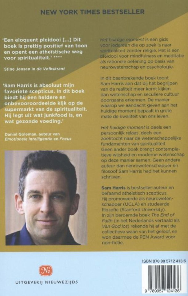 Het huidige moment is deels een persoonlijk relaas, deels een zoektocht naar de wetenschappelijke fundamenten van spiritualiteit. Geen ander boek brengt contemplatieve wijsheid en moderne wetenschap op deze manier samen. Geen andere auteur dan neurowetenschapper en filosoof Sam Harris had het kunnen het schrijven.