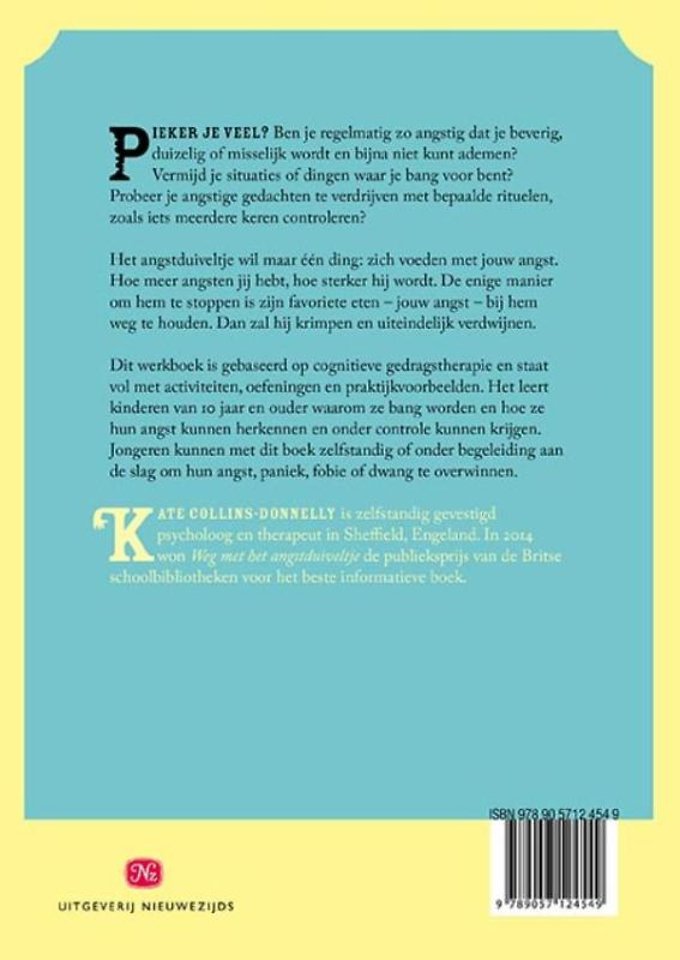 angst cognitieve gedragstherapie psychologie jongeren vecht-vlucht-verstijfreactie zelfhulp angstduiveltje paniek piekeren angststoornissen werkboek persoonlijke ontwikkeling gedachten bijsturen gedrag bijsturen lichamelijke reacties emotieregulatie vermijdingsgedrag empowerment exposure zelfbeeld dwanggedachten negatieve denkpatronen fobieën zelfredzaamheid stress mentale weerbaarheid copingstrategieën sociale angst ontspanningstechnieken adolescentie