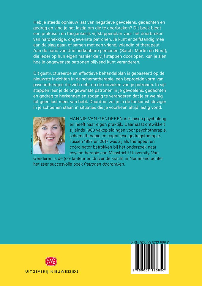 In 'Doorbreek je patronen in vijf stappen' biedt Hannie van Genderen, klinisch psycholoog en (co-)auteur van de bestseller Patronen doorbreken, een praktisch vijfstappenplan voor het veranderen van ongewenste gevoelens, gedachten en gedrag.