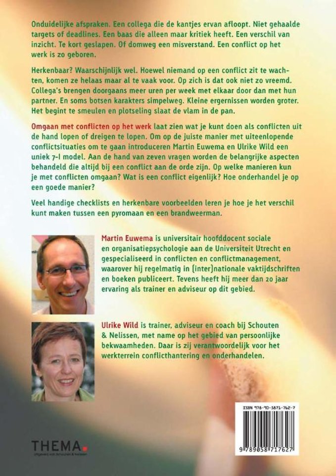 'Vuurhaarden, pyromanen en brandweermannen' laat zien wat u kunt doen als conflicten uit de hand lopen of dreigen te lopen. Om op de juiste manier met uiteenlopende conflictsituaties om te gaan, introduceren Martin Euwema en Ulrike Wild een uniek 7-I model. Aan de hand van zeven vragen worden de belangrijkste aspecten behandeld die altijd bij een conflict aan de orde zijn. Op welke manieren kunt u met conflicten omgaan? Wat is een conflict eigenlijk? Hoe onderhandelt u op een goede manier?