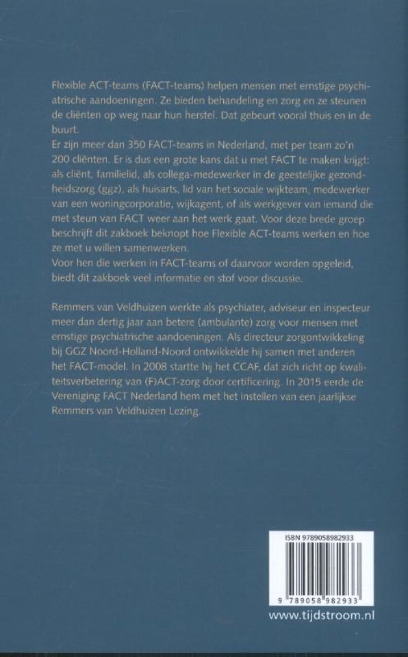 Er zijn meer dan 350 FACT-teams in Nederland, met per team zo'n 200 cliënten. Er is dus een grote kans dat u met FACT te maken krijgt: als cliënt, familielid, als collega-medewerker in de geestelijke gezondheidszorg (ggz), als huisarts, lid van het sociale wijkteam, medewerker van een woningcorporatie, wijkagent, of als werkgever van iemand die met steun van FACT weer aan het werk gaat. Voor deze brede groep beschrijft dit zakboek beknopt hoe Flexible ACT-teams werken en hoe ze met u willen samenwerken.