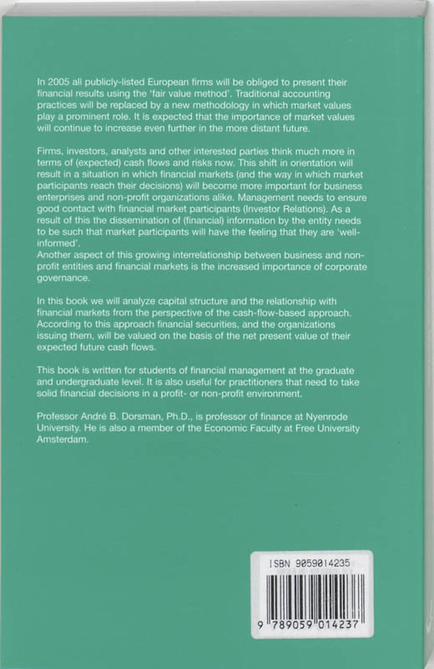 Dit boek is geschreven voor studenten en afgestudeerden financieel management. Het is ook nuttig voor vaklieden die belangrijke financiële besluiten moeten nemen in een profit alsmede non-profit omgeving.
