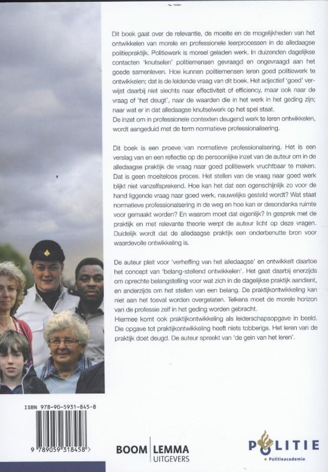 Dit boek is een proeve van normatieve professionalisering. Het is een verslag van en een reflectie op de persoonlijke inzet van de auteur om in de alledaagse praktijk de vraag naar goed politiewerk vruchtbaar te maken. Dat is geen moeiteloos proces. Het stellen van de vraag naar goed werk blijkt niet vanzelfsprekend. Hoe kan het dat een ogenschijnlijk zo voor de hand liggende vraag naar goed werk, nauwelijks gesteld wordt? Wat staat normatieve professionalisering in de weg en hoe kan er desondanks ruimte voor gemaakt worden? En waarom moet dat eigenlijk?