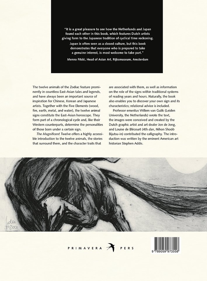 Professor emeritus Willem van Gulik (Leiden University, the Netherlands) wrote the text, the images were conceived and created by the Dutch graphic artist and art dealer Jon de Jong, and Louise de Blécourt (3rd dan, Nihon Shodō Bijutsu-in) contributed the calligraphy. The introduction was written by the eminent American art historian Stephen Addis.