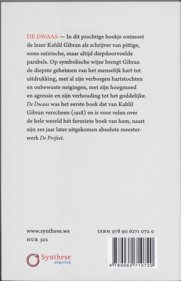 'De Dwaas' was het eerste boek dat van Kahlil Gibran verscheen (1918) en is voor velen over de hele wereld hét favoriete boek van hem, naast zijn 6 jaar later uitgekomen absolute meesterwerk 'De Profeet'.