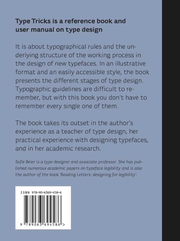 Being an expert as a typography professor, Sofie Beier knows exactly what the students need to know and how they can improve their skills. 'Type Tricks' is not only perfect for students, it also comes in handy for every type designer. It gives them the opportunity to reread information they were taught at during their time at school. It's the perfect reference book.