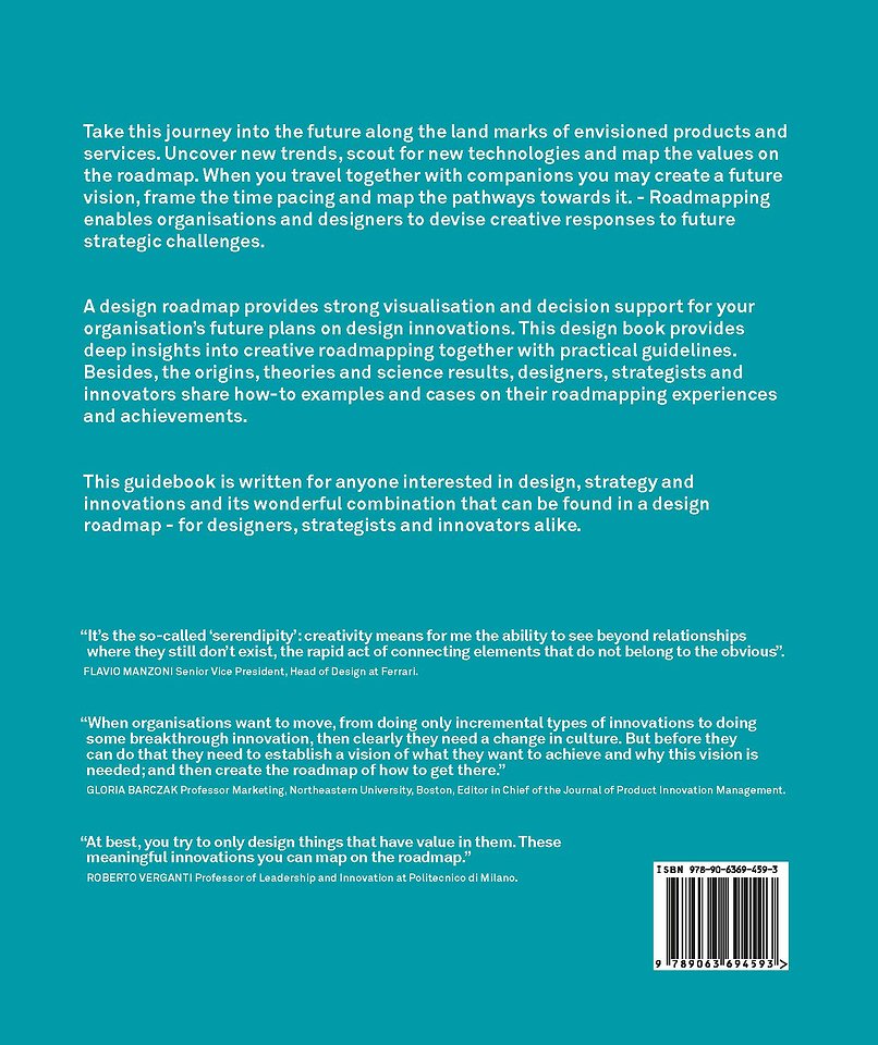 This guidebook teaches you how to create a roadmap. It outlines the origins, design theories and science results. Strategic designers, innovation managers and professors share their roadmapping experiences, views and achievements, including venture CPOs, Head of Design, product and program managers of international companies such as Canon, Peerby, Ferrari, Philips, Victoria State Library and many more.