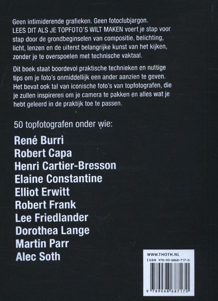 Het boek staat boordevol praktische technieken en nuttige tips om je foto's onmiddellijk een ander aanzien te geven. Het bevat ook tal van iconische foto's van topfotografen, die je zullen inspireren om je camera te pakken en alles wat je hebt geleerd in de praktijk toe te passen.