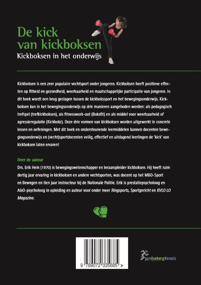 Kickboksen is een zeer populaire vechtsport onder jongeren. Kickboksen heeft positieve effecten op fitheid en gezondheid, weerbaarheid en maatschappelijke participatie van jongeren. In dit boek wordt een brug geslagen tussen de kickbokssport en het bewegingsonderwijs. Kickboksen kan in het bewegingsonderwijs op drie manieren aangeboden worden: als pedagogisch trefspel (trefkickboksen), als fitnesswork-out (Boksfit) en als middel voor weerbaarheid of agressieregulatie (Kickbokz). Deze drie vormen van kickboksen worden uitgewerkt in concrete lessen en oefeningen. Met dit boek en ondersteunende leermiddelen kunnen docenten bewegingsonderwijs en (vecht)sportdocenten veilig, effectief en uitdagend leerlingen de ‘kick’ van kickboksen laten ervaren!