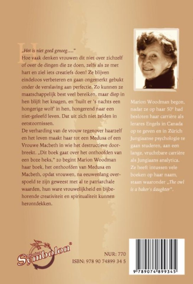 De verharding van de vrouw tegenover haarzelf en het leven maakt haar tot een Medusa of een Vrouwe Macbeth in wie het destructieve doorbreekt. "Dit boek gaat over het onthoofden van een boze heks, " zo begint Marion Woodman haar boek, het onthoofden van Medusa en Macbeth, opdat vrouwen, na eeuwenlang overspoeld te zijn geweest met al te patriarchale waarden, hun ware vrouwelijkheid en bijbehorende creativiteit en spiritualiteit kunnen herontdekken.