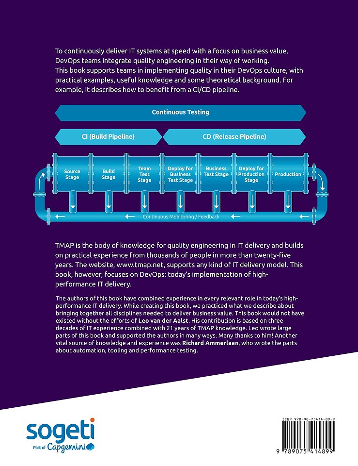 TMAP is the body of knowledge for quality engineering in IT delivery and builds on practical experience from thousands of people in more than twenty-five years. The website, www.tmap.net, supports any kind of IT delivery model. This book, however, focuses on DevOps: today’s implementation of high-performance IT delivery.