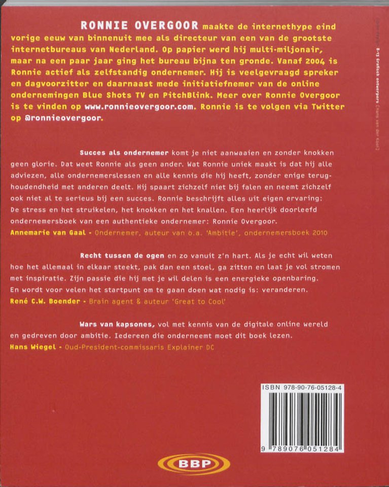 Ronnie Overgoor deelt zijn ervaringen graag met zijn lezers: "Ik vind het zonde om de lessen voor mezelf te houden." De lessen zijn onderverdeeld in 3 hoofdstukken: Middelen en Tools, Kennis en Communicatie, Mensen.